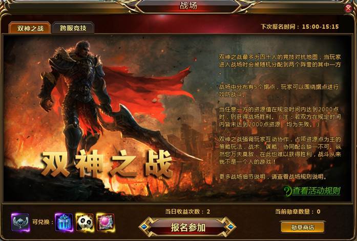 点击“战场”图标,并切换到双神之战分页下