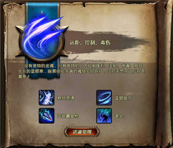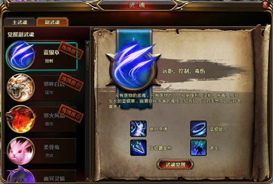 2、 初次武魂选择:玩家在进入游戏完成武魂殿地图主线任务后,即可在三个练级效率较高的武魂中进行主武魂的选择(蓝银草、邪眸白虎、邪火凤凰)。