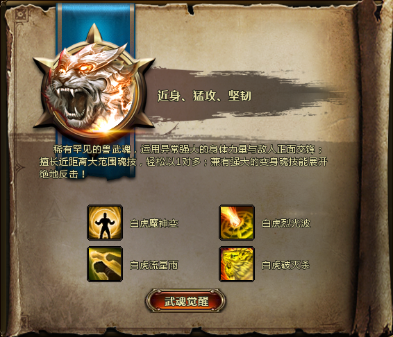 1、 武魂介绍:游戏忠实还原原著小说设定,玩家可在游戏中体验到史莱克七怪的所有武魂,目前版本提供蓝银草、邪眸白虎、邪火凤凰、柔骨兔、幽冥灵猫共五个武魂类型。