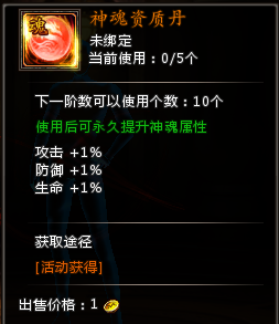 (1)神魂可以喂食资质丹,资质丹可以按百分比增加神魂的进阶属性;