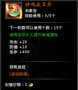 (3)神魂成长丹可以通过神魂进阶副本掉落或者声望商店兑换获得;